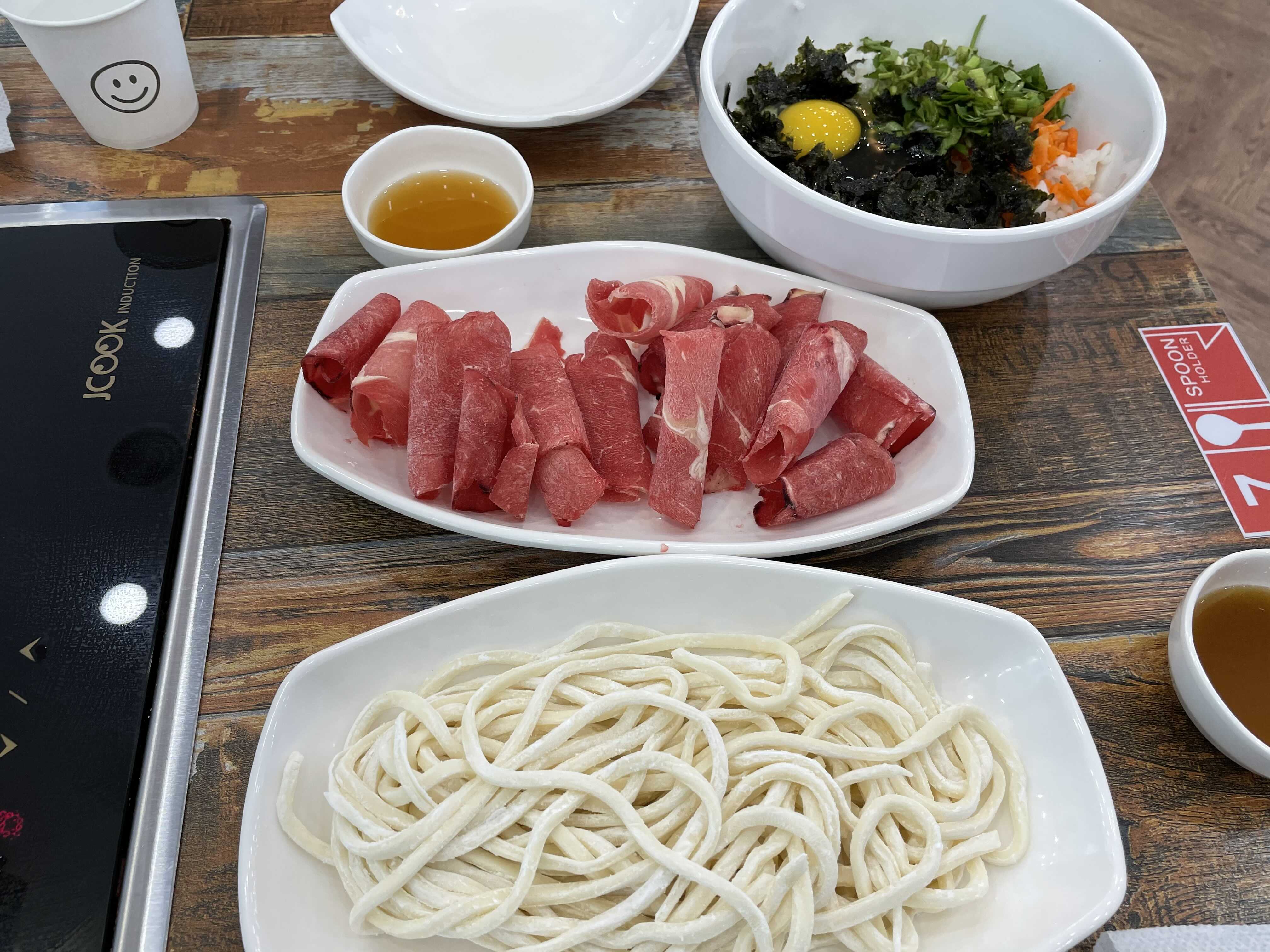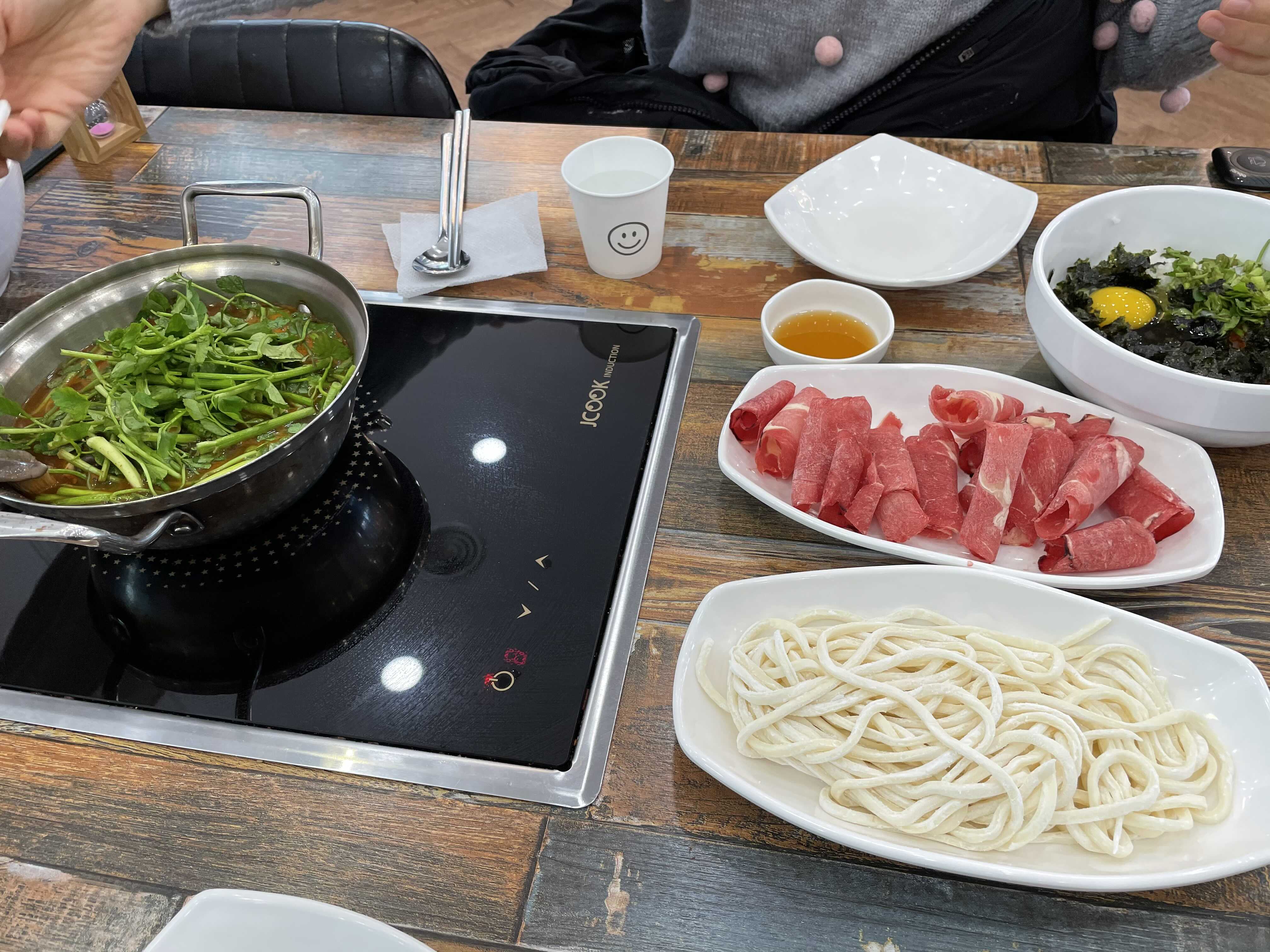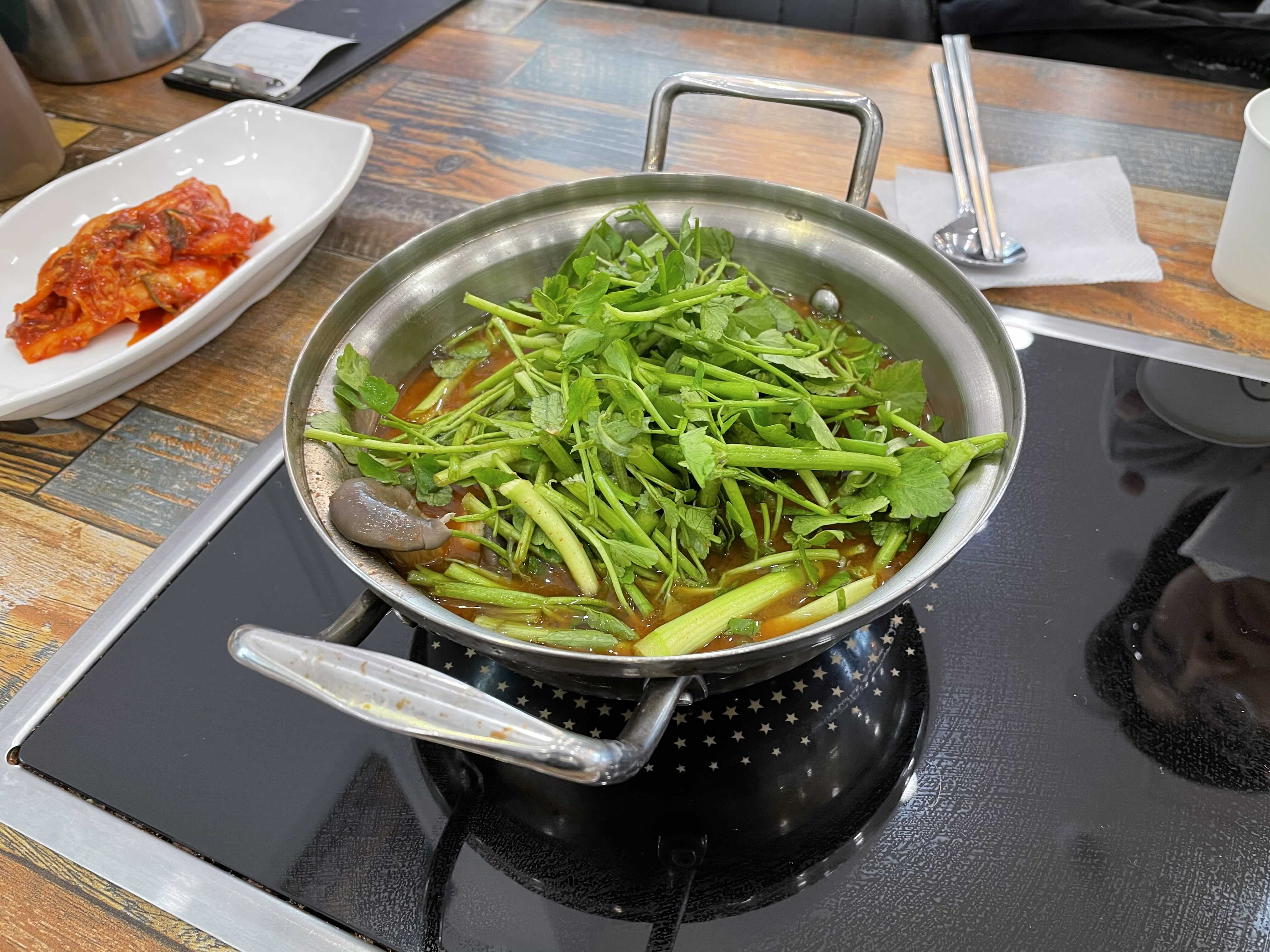 미나리와 버섯이 들어가서 얼큰하고 맛있어요.