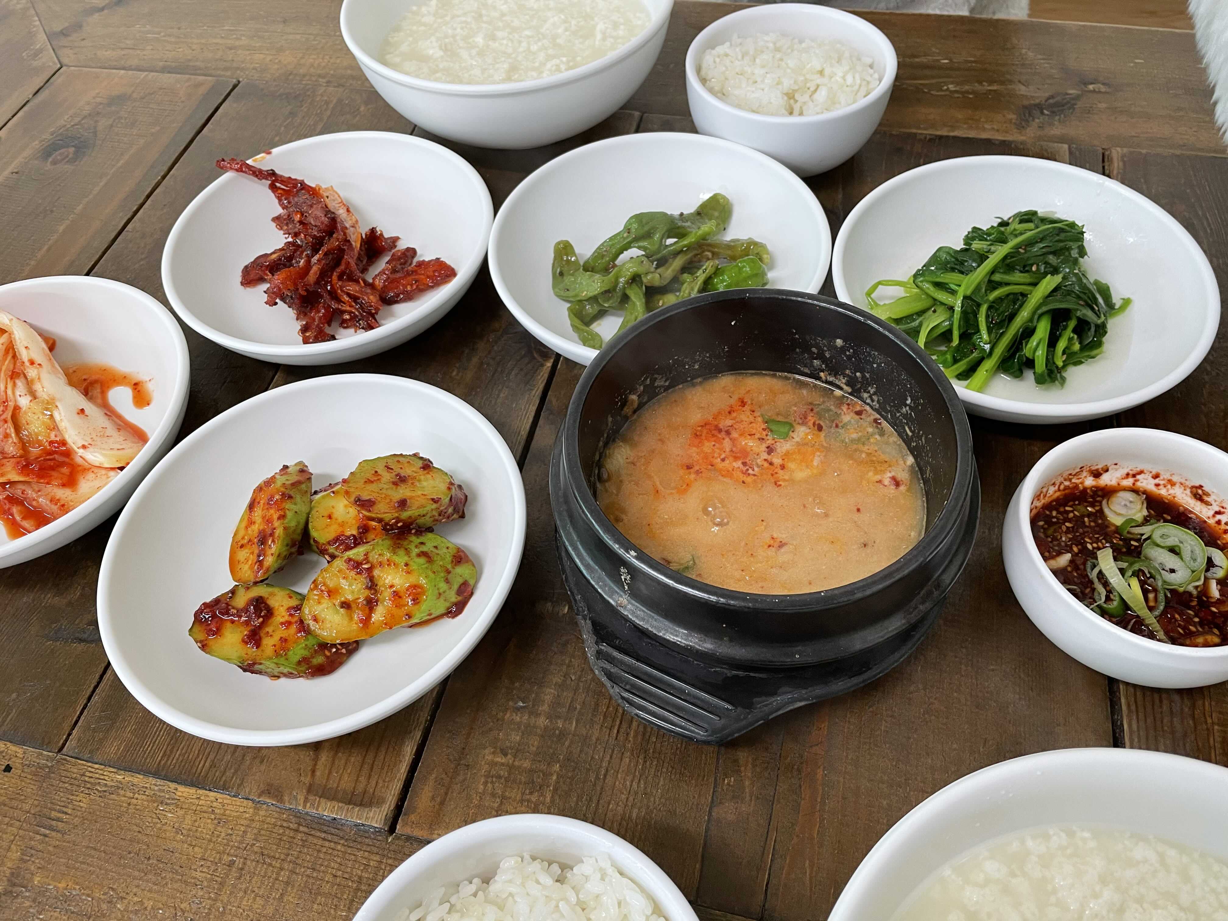 밑반찬으로 나오는 콩비지찌개가 맛있어요